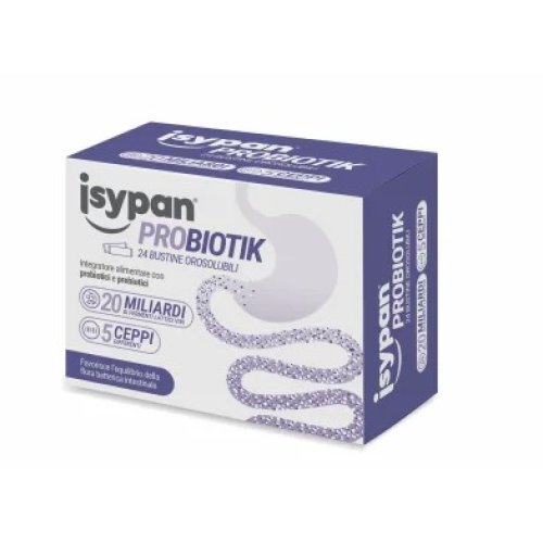 Isypan® Probiotik è un integratore alimentare utile per favorire il ripristino della flora batterica intestinale. Contiene fermenti lattici, fibre prebiotiche (frutto-oligosaccaridi: FOS Actilight®), succo di carota e edulcoranti.