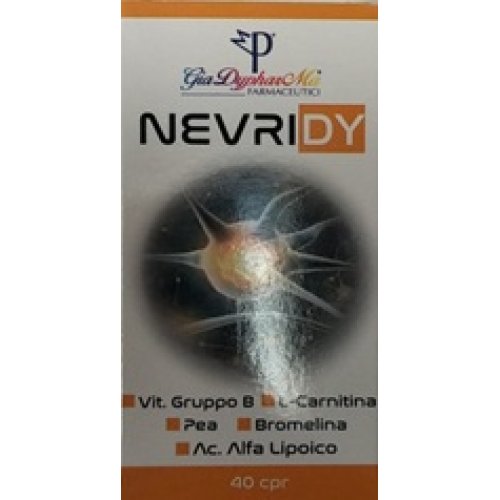 Nevridy 40 Compresse è un integratore alimentare sviluppato da GiadYPharma Farmaceutici Srls, appositamente formulato per supportare il benessere del sistema nervoso e contribuire alla normale funzionalità neurologica. Grazie alla presenza sinergica di vitamine del gruppo B, L-Carnitina, PEA (Palmitoiletanolamide), Bromelina e Acido Alfa Lipoico, Nevridy rappresenta un valido supporto in caso di aumentato fabbisogno nutrizionale o carenze specifiche.